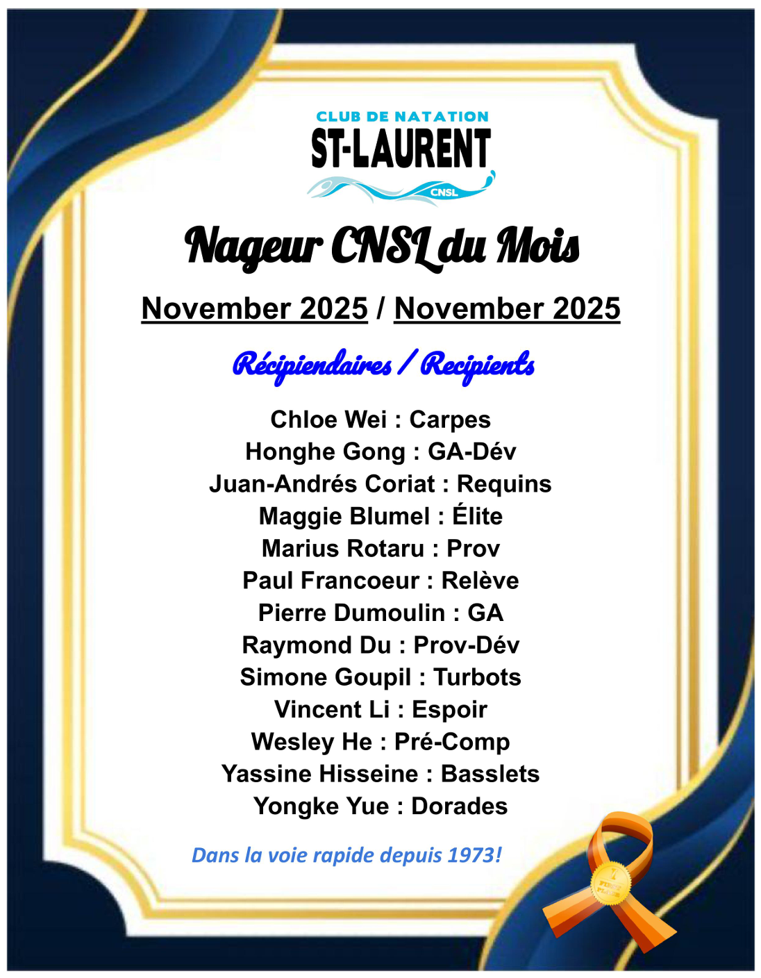 NAGEURS CNSL DU MOIS – NOVEMBRE 2025