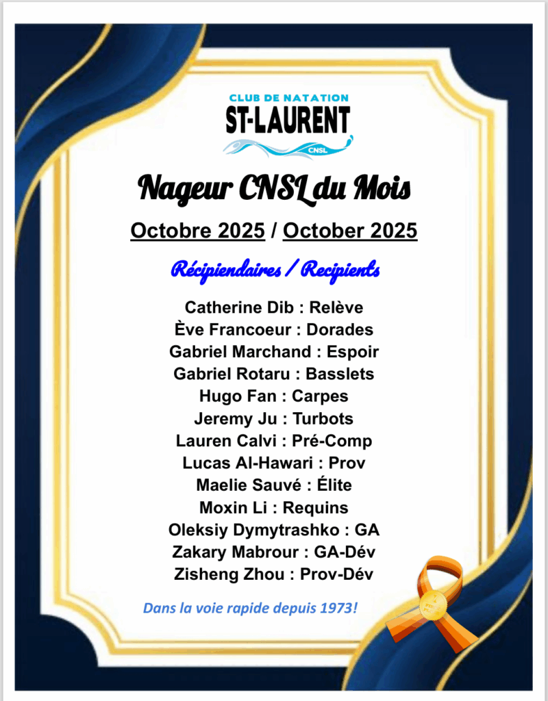 NAGEURS CNSL DU MOIS – OCTOBRE 2025