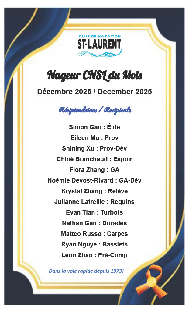 NAGEURS CNSL DU MOIS – DÉCEMBRE 2025