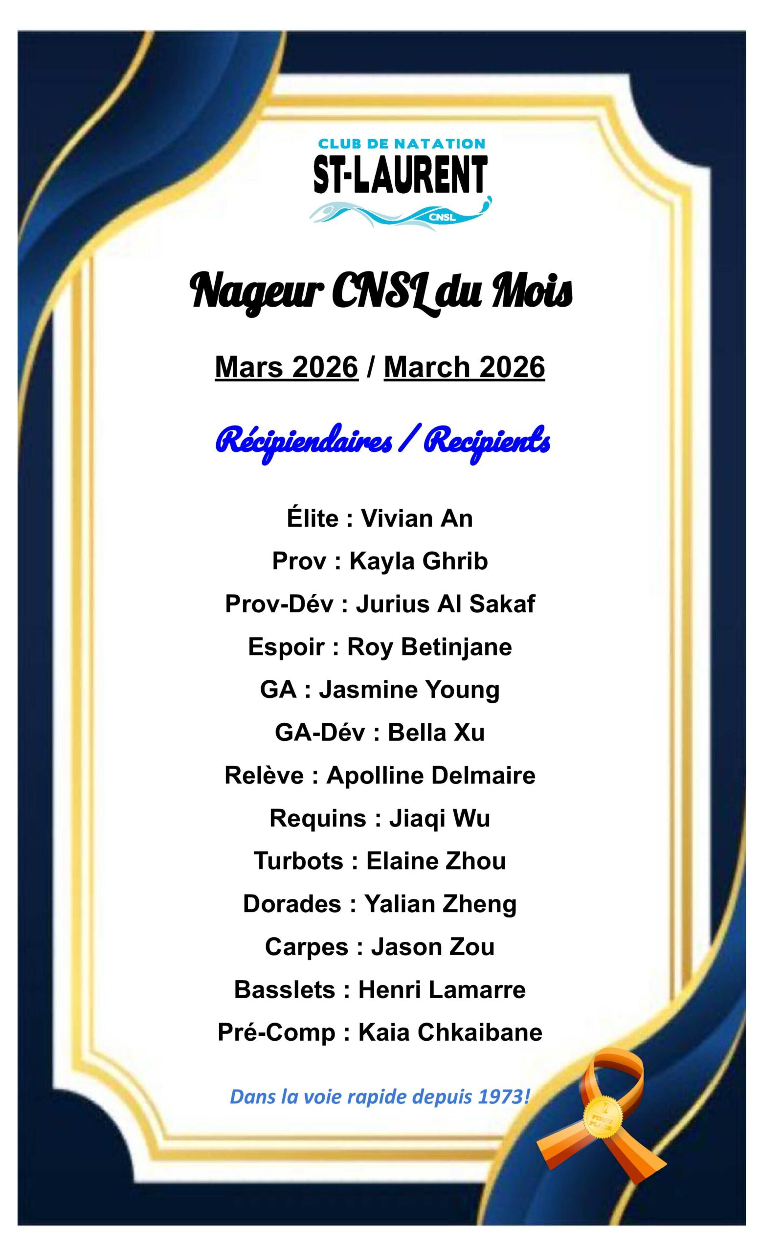 NAGEURS CNSL DU MOIS – FÉVRIER 2026